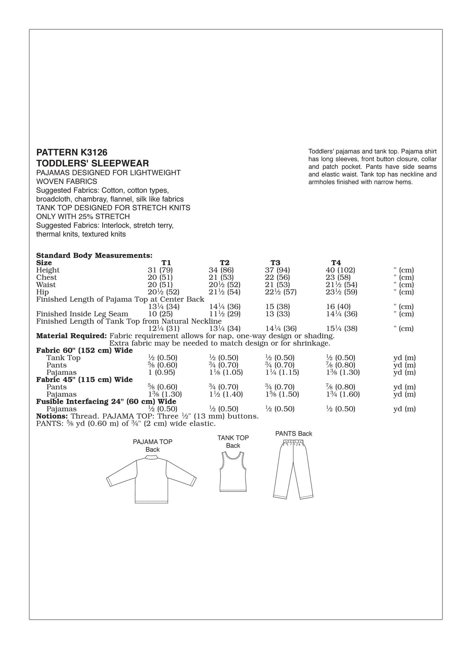 Sewing Pattern Toddlers Pajamas Kwik Sew Pattern K3126 Etsy Uk